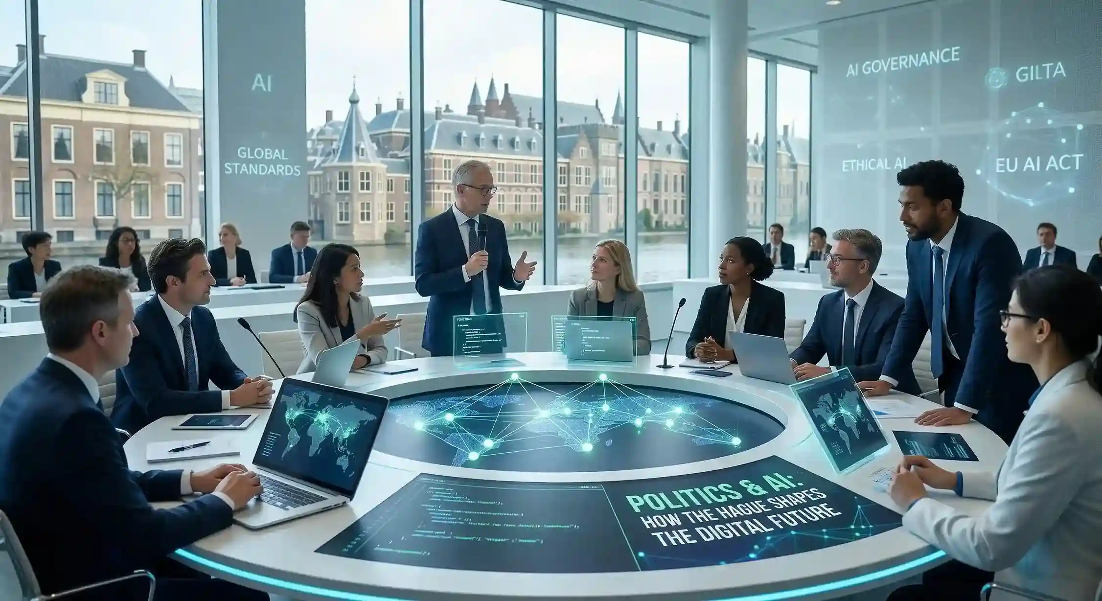 In Den Haag, het politieke hart van Nederland, werken beleidsmakers, toezichthouders en internationale organisaties aan het vaststellen van de manier waarop kunstmatige intelligentie moet worden gereguleerd. Hun beslissingen zijn van invloed op kwesties als gegevensbescherming, algoritmische transparantie, AI-veiligheid en wereldwijde technologische normen.